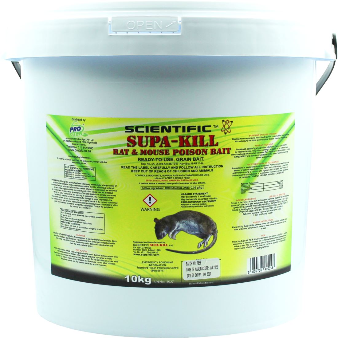 Protek Supa-Kill Rat & Mouse Ready to Use Grain Bait is a powerful, ready-to-use grain anticoagulant rodenticide. It is formulated for effective control of problematic rodents, including Roof Rats, Norway Rats, and Common House Mice.