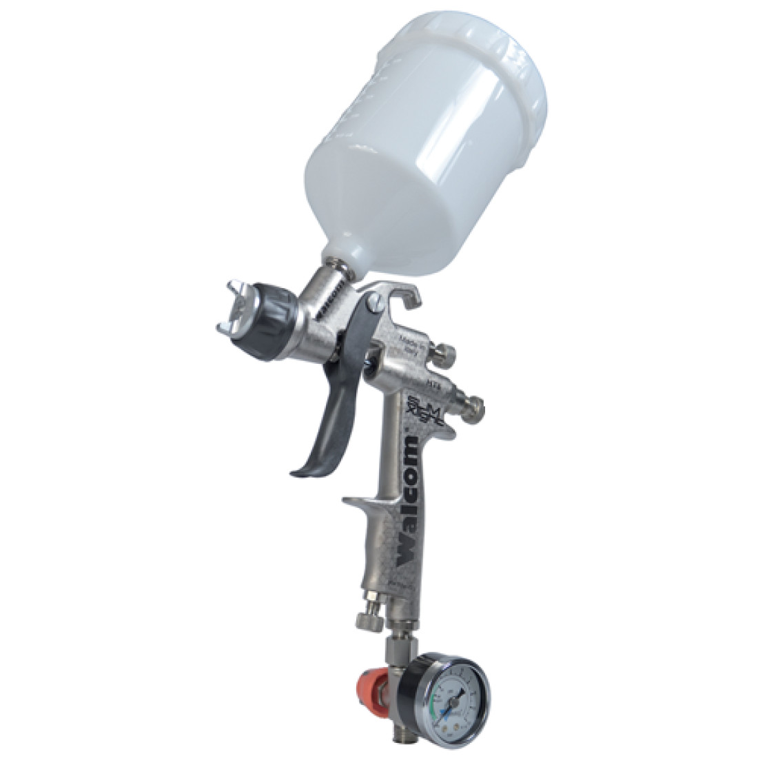 The Walcom Slim spray gun models have become synonymous with quality, reliability and versatility for over a decade, appreciated throughout the world of painting: from car refinish to the industrial industry and carpentry. Lighter than ever before, only weighing 455g! Slim XLight is not only lighter but offers better transfer efficiency, a fan pattern and atomisation of the highest level. Easy to clean with improved durability and reliable performance due to itâs sturdiness. Matt nickel plating and laser engraving not only contributes to this, but presents an attractive look!The best features of previous SLIM models, now merged with new technological solutions to produce an HTE gun ideal for various automotive refinish and industrial or manufacturing applications. It is suitable to use for base coat, clear coat or primers and available in 1.0mm, 1.3mm and 1.7mm nozzle options. With a full sales package and a rigid eco plastic case design, convenience is combined with value.The Slim XLight spray gun is constructed with an air valve and needle on a single axis to provide higher performance and greater maintenance simplicity.Designed and made from materials that are anticorodal to guarantee resistance to any type of paint, solvent and thinner. CNC-machined stainless steel needle for maximum durability and precision alignment with the nozzle.