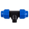 Tee Compression Male 32×3/4. Compression fittings for HD polyethylene pipe. Outer dimensions comply with ISO standards from 16mm to 110mm. Rubber O-ring ensures a perfect seal and complete water tightness whether the pipe is bent or straight. Works well in high-pressure applications with a 16 Bar resistance exceeding all pull-out standards. Features a universal connection on one side compatible with galvanized PVC (imperial and metric) HDPE pipes. Durable and corrosion-resistant these fittings offer reliable long-lasting performance for irrigation and industrial systems.