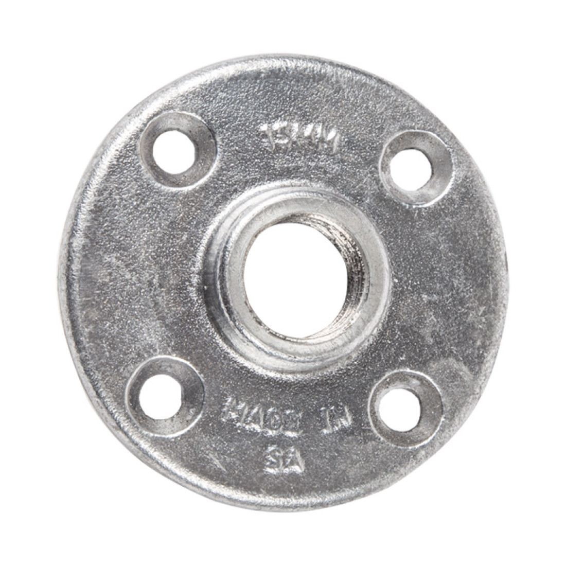 Lightweight pipe flanges. Made in SA for DIY pipe furniture and interior decoration projects. Flange 15mm pipe OD 20mm.