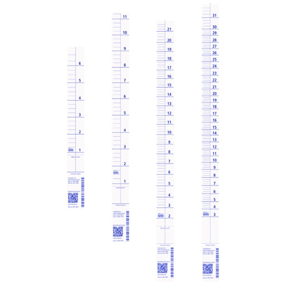 The B��rkle Liter Scale Blue is specifically designed for use with 0431 / 0432-0005 6-liter wide mouth canisters. With a smallest graduation of 250 ml, it ensures accurate volume measurement, making it ideal for laboratory and industrial use. The blue scale offers excellent visibility, aiding in precise liquid handling and monitoring.