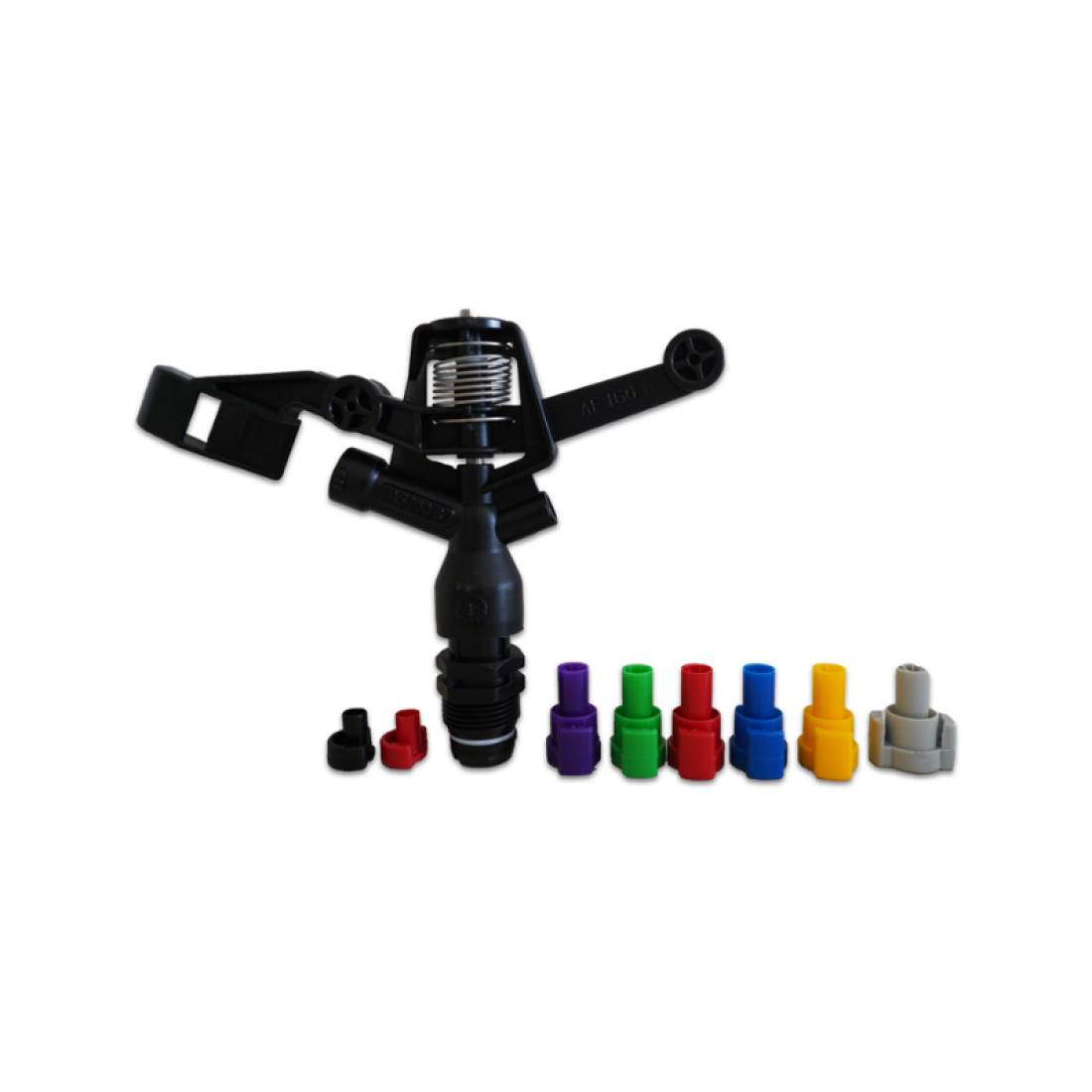 The AF160B impact sprinkler FC 20mm with male thread is a versatile and durable irrigation solution. It comes complete with Bayonet nozzles in sizes 3.2mm 3.6mm 4mm 4.4mm 4.8mm and 5.2mm as well as a 2.4mm spreader and plug for easy configuration based on specific needs. Designed for both residential and commercial applications this sprinkler offers flexible water flow with rates ranging from 525 l/hour to 2410 l/hour. The wetted diameter varies between 19 and 24 meters depending on the combination of nozzle and spreader ensuring optimal coverage for different landscape sizes. With a pressure range of 2 to 5 Bar the AF160B is adaptable to various water pressures making it suitable for different irrigation systems. The high-quality materials and thoughtful design make this sprinkler reliable for long-term use. It delivers even water distribution for lawns gardens and crops, promoting healthy growth and efficient water use while reducing wastage. Its compact design ensures easy installation and minimal maintenance.