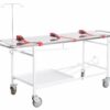 PATIENT TROLLEY Standard with backrest Drip rod and straps, O2 cylinder holder and blanket tray. Universal folding bed sides 2160 long x 760 wide x 780 high Epoxy powder coated throughout. Stainless steel top. No tilting