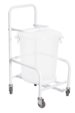 Mobile Clinibin. Small. Epoxy powder coated tubular frame. 20 litre capacity plastic bin. Foot pedal to lift and lower plastic lid for the bin. Frame mounted on 4 swivel castors. Bin removable. Lid secured to frame. (Dimensions; height 735ram; width 485mm; length 500mm)
