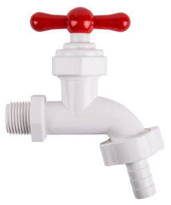The Kaufmann Complete Nylon Tap is constructed from durable polypropylene, designed for long-lasting performance. This 15mm tap features a built-in hose connection, making it ideal for domestic use, including garden hoses and outdoor water systems. Its lightweight design ensures easy handling and installation, while the white body with a red handle offers a clean and simple aesthetic. The tap allows for quick and secure hose attachment, preventing leaks and ensuring smooth water flow. Resistant to weather and corrosion, it is perfect for outdoor applications. Comes with all necessary fittings for a hassle-free setup.