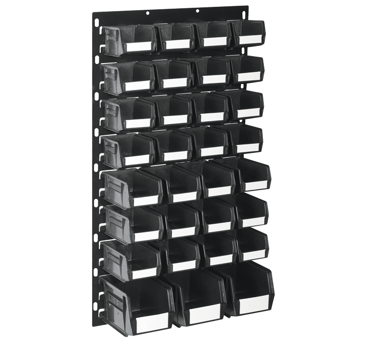500 x 900 black panel complete with 31 black Linbin ® storage bins |