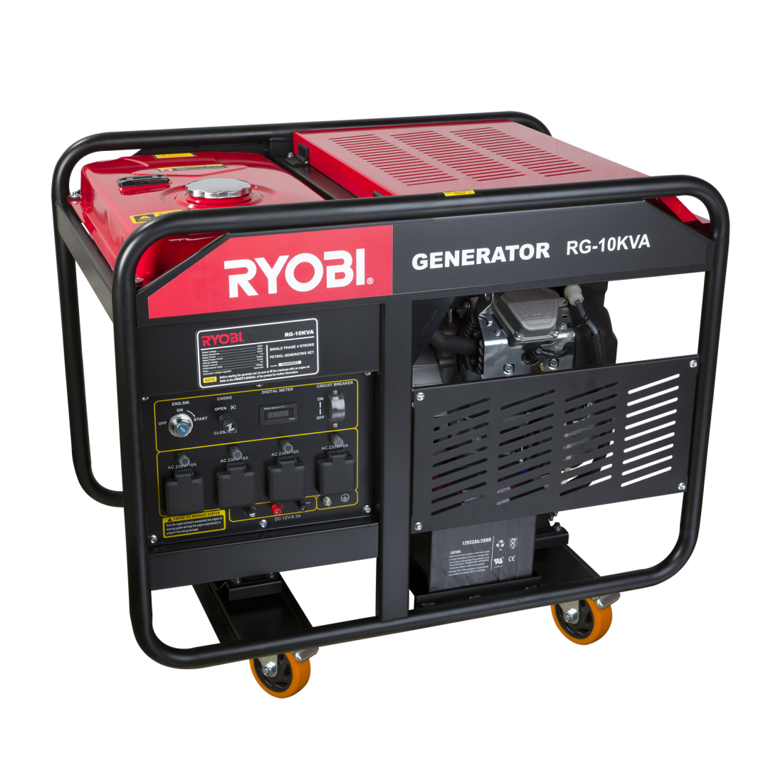 4-Stroke Generator Rg-10KvaFEATURES:Max 11 000 Watt with key start and manual start.Maintenance-free battery included.Reliable AVR system.Heavy-duty roll-cage for rough handling conditions.Strong wheels and handrails for easy transporting.3-in-1 digital read out meter to monitor output voltage, frequency and run time.SPECIFICATIONS:4 Stroke engine25L tankMax 11Kw12v BatteryNett weight 160kgRun time 9 hoursAVR