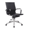 Executive high back chair made with black bonded leather comes with torsion knee tilt mechanism. Chrome spider base, chrome arms with leather cover. Lead time on some products are 14-21 business days.