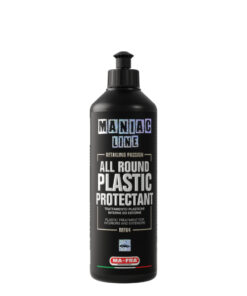 The Maniac Line All Round Plastic Protectant is a water-based, pH-neutral treatment for interior and exterior car plastics.This superior product is stain resistant, repels water and dirt in general. The treated surface will require less cleaning and will continue looking like new over time.Formulated with Anti-UV Technology, it effectively blocks ultra violet rays, preventing whitening and cracking of the treated surfaces.This amazing product can also be used to treat and protect tyres.DILUTION:For bleached exterior plastics, use undiluted.Faded interior plastics, dilute 1:1.For a more subtle effect, dilute 1:2.