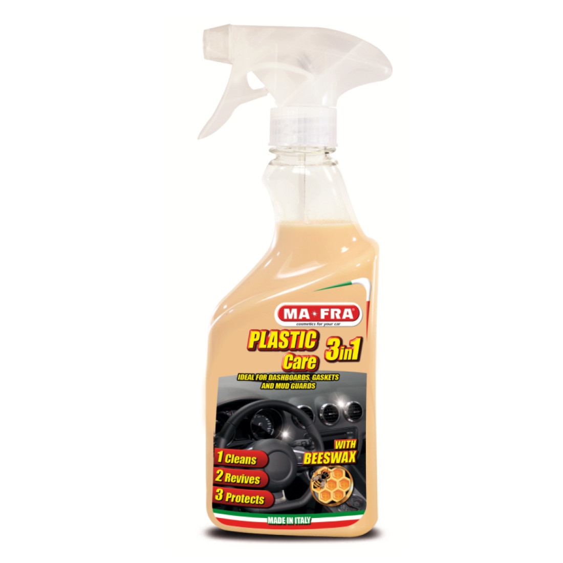 The MA-FRA 3 in 1 Plastic Treatment is a product designed for cleaning vehicle interior plastics. Cleaning the car interior, thanks to this superior product, will be quick and easy: stains and dirt on the internal plastics will have no escape.This amazing Plastic Treatment is ideal for all interior plastic parts, eliminating bad smells while being quick and easy to apply. Revives and protects dashboards, eliminates bad smells and leaves surfaces smooth to the touch while ensuring an effective anti-UVA and anti-static barrier.
