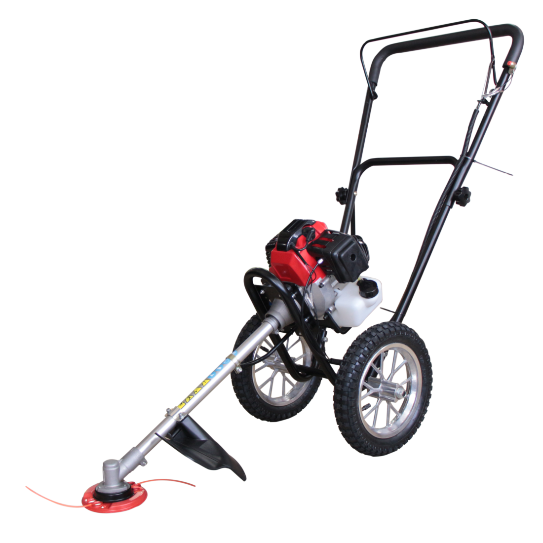 Ryobi Wheeled String Trimmer-MowerFEATURES:Wide throttle lever for safety and simple operationWide handle and long shaft design for wider working range with stable control.Can be used as a Brush Cutter with 255mm cutting path or a Line Trimmer with 400mm cutting path for various trimming jobs without any tools.Easy-to-manoevre large wheels for all sorts of terrain operation.Handle folds in seconds to take less space for storage.Quick-mount trimmer head for easy assembly and disassemblySPECIFICATIONS:Engine Type: 52cc, 2-strokePower Output: 1.46kWEngine Speed: 3 500 â 8 500min-1Cutting Path (Line): 400mmCutting Path (Blade): 255mmCutting Height: 45mmFuel Tank Capacity: 1.3LFuel Mix Ratio: 25:1Trimming Line Diameter: 2.0mmBlade Type: 3-teethNett Weight: 13.1kgBarcode: 6009710591116Ryobi Wheeled String Trimmer-MowerWarranty: 2 years