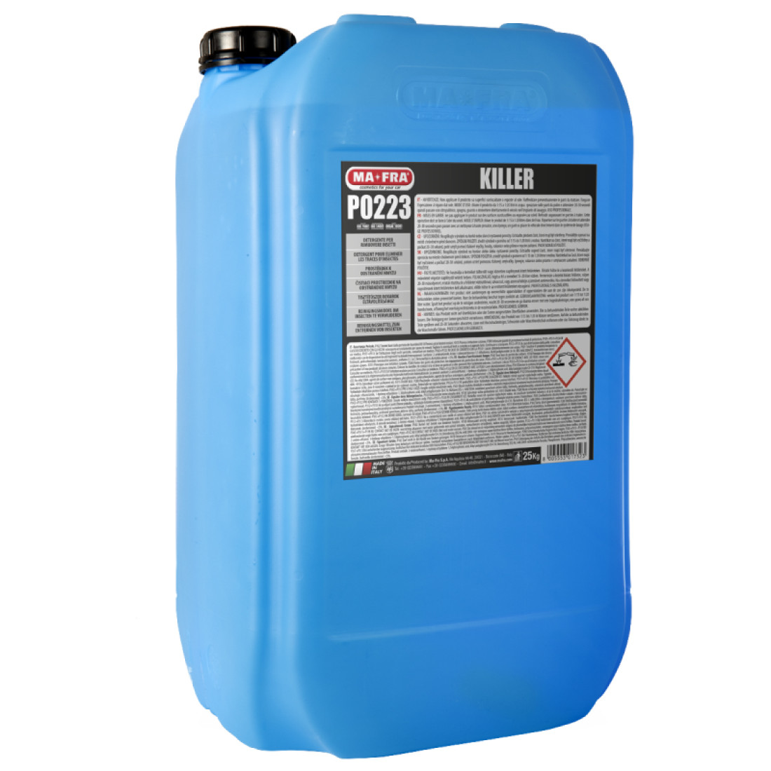 The MA-FRA Killer Insect Remover is a highly qualified product to quickly remove insects from cars, motorbikes and caravans, thanks to its formula with a balanced pH. It dissolves and removes stubborn dirt with ease and without causing damage to surfaces.This superior product rapidly eliminates and dissolves all traces of insects from cars, motorbikes and helmets.MA-FRA Killer effectively removes resin and deep cleans all kinds of dirt from bodywork, even biological remains of flying insects. It respects the paintwork and any delicate parts of the car while its ecological formula respects the environment.