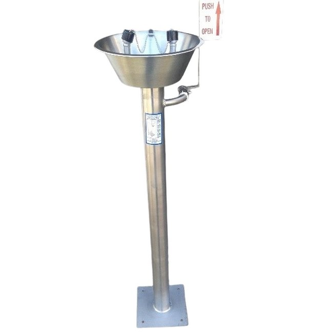 Designed for emergency use in workplaces or labs. It provides a continuous stream of water to flush chemicals or contaminants from the eyes or body.